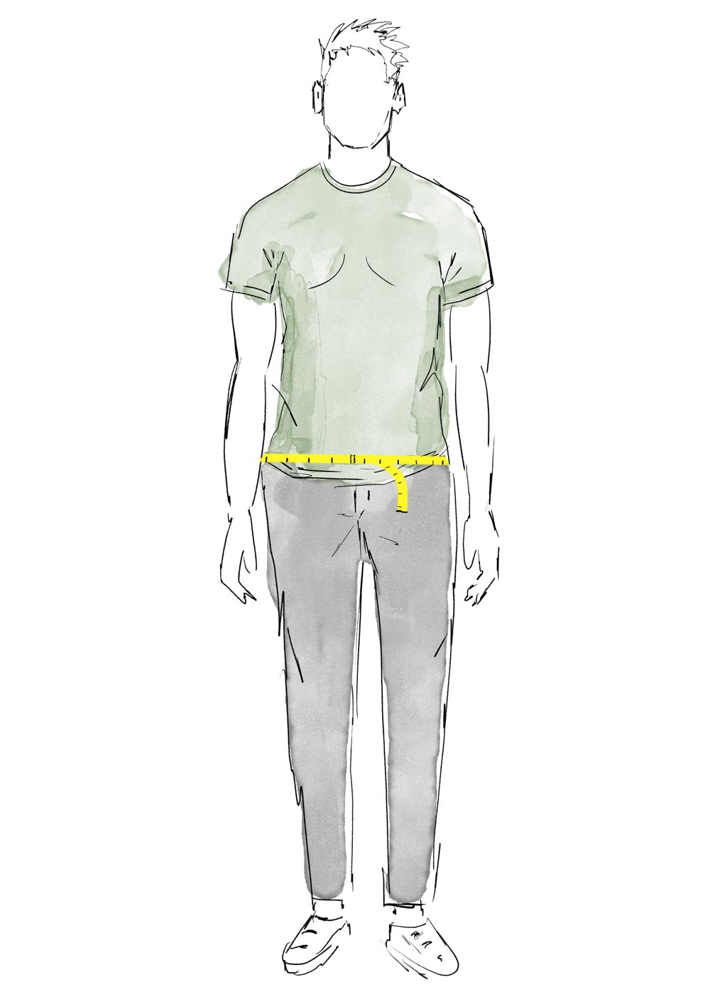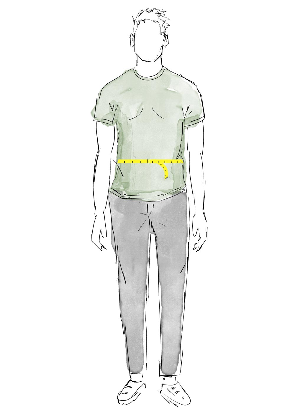 Miss den Umfang deiner Taille auf Höhe des Bauchnabels.