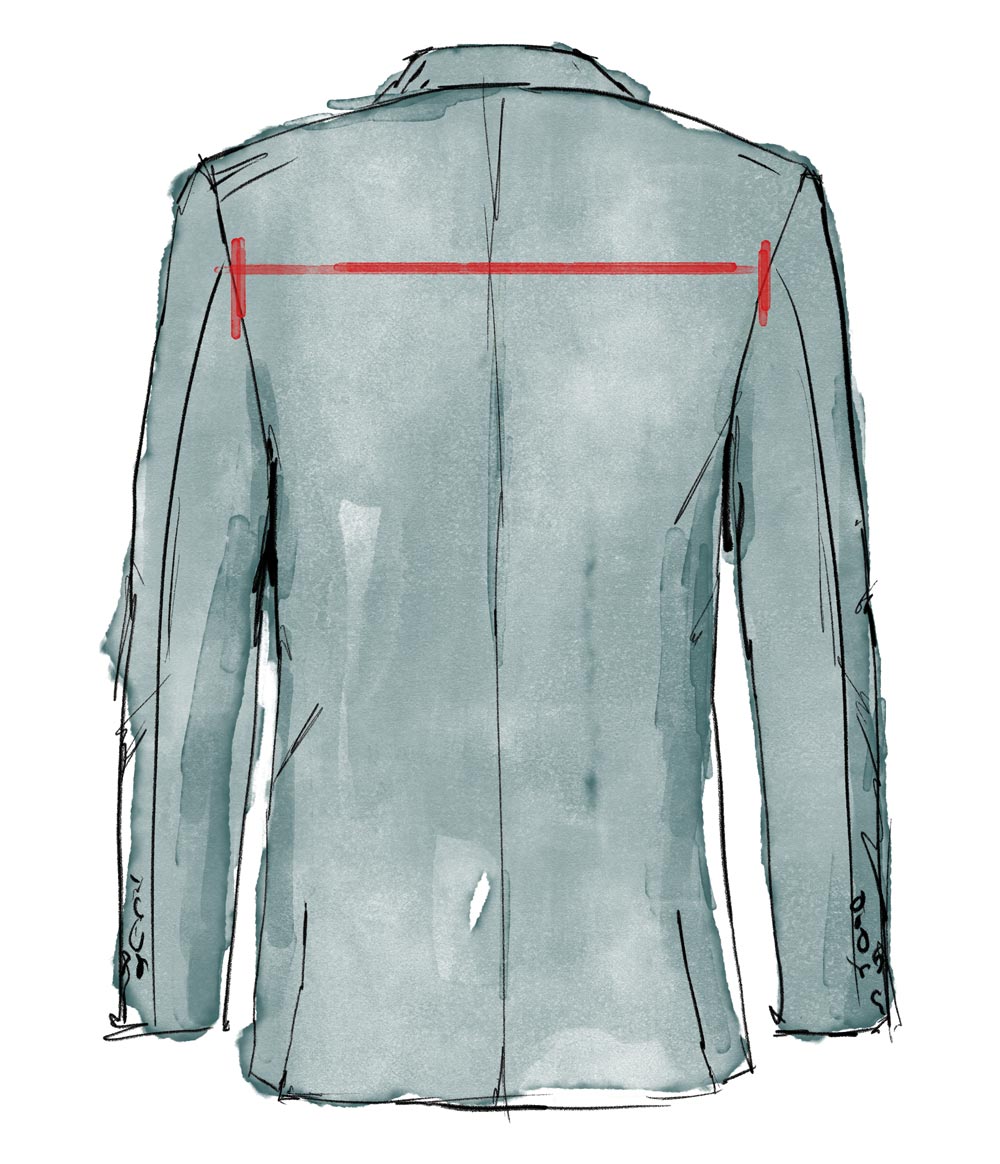 Das Sakko mit dem Rückteil nach oben auf einen Tisch legen und den Rücken glatt streichen. Nun auf der Höhe der hinteren Ärmelnaht vom linken zum rechten Ärmel messen.